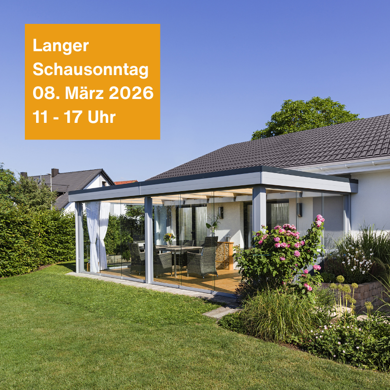 Unser Extra für Sie: Bei Auftragserteilung bis zum 30. April 2026 für einen Wintergarten oder eine Terrassenüberdachung sparen Sie 50%* auf die LED-Beleuchtung. *vom Nettopreis
