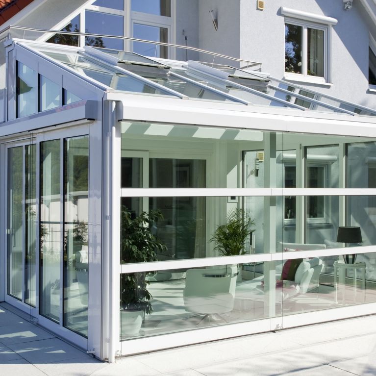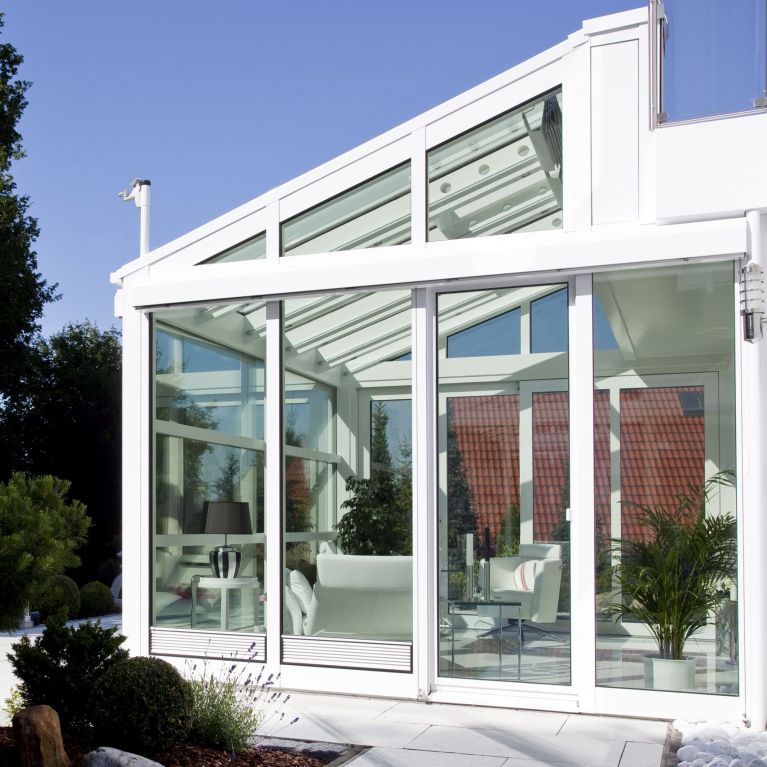 Bei unserer Kundenfamilie hinterließ der Design-Wintergarten in Weiß seit dem Eröffnungswochenende unserer Wintergartenausstellung eine beeindruckende Wirkung. Vor allem die waagerechten Gläser mit ihrer großzügigen Teilung machen hier das Besondere dieses Wintergartenobjekts aus. Der barrierefreie Wintergarten unseres Kunden ist ausgestattet mit einer Touchscreen-Wintergartensteuerung, ausgerichtet nach den Komponenten Licht, Wind, Regen, Sonne, Außen- und Innentemperatur. So werden automatisch verschiedene Elemente wie Dachlüftungsflügel, Zu- und Abluftgerät, Sonnensegel, Fußbodenheizung, und die Außenjalousien gesteuert.